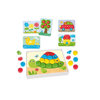Un crocodile en bois qui va dévorer les pions colorés. L’enfant place la carte en cachant le ventre du croco. Il insère ensuite les pions colorés en suivant les instructions de la carte à l’aveugle. Un jeu dès 3 ans pour apprendre tout en s’amusant !