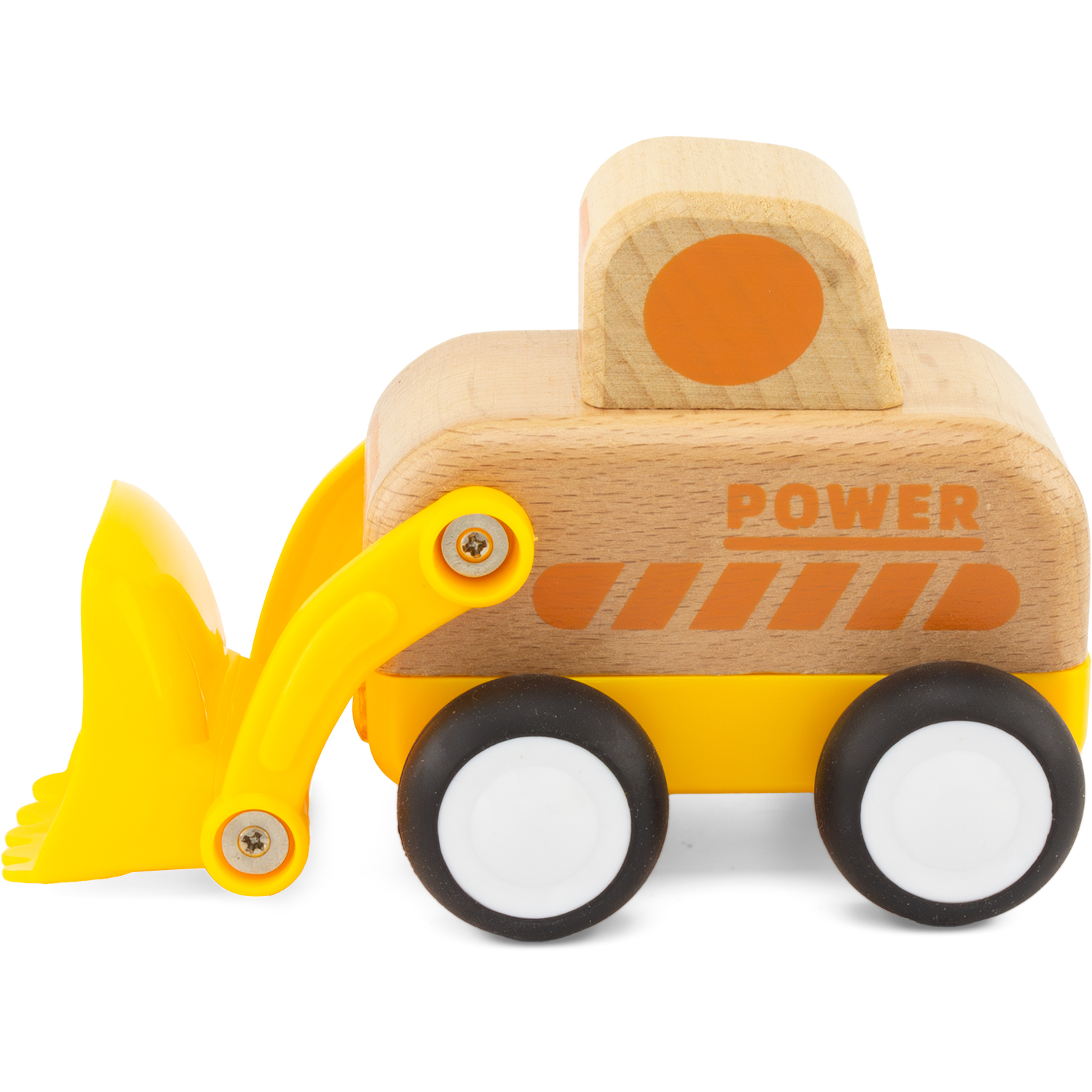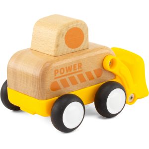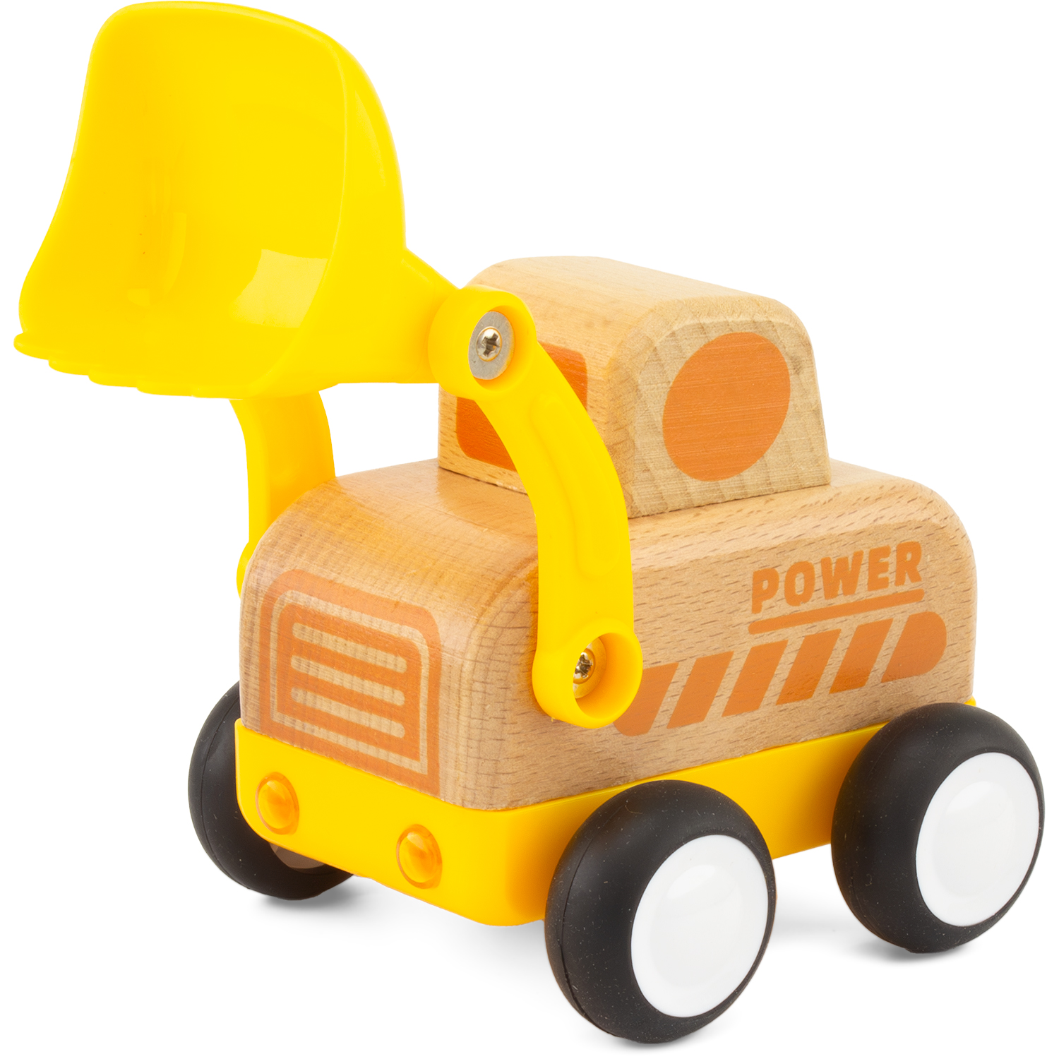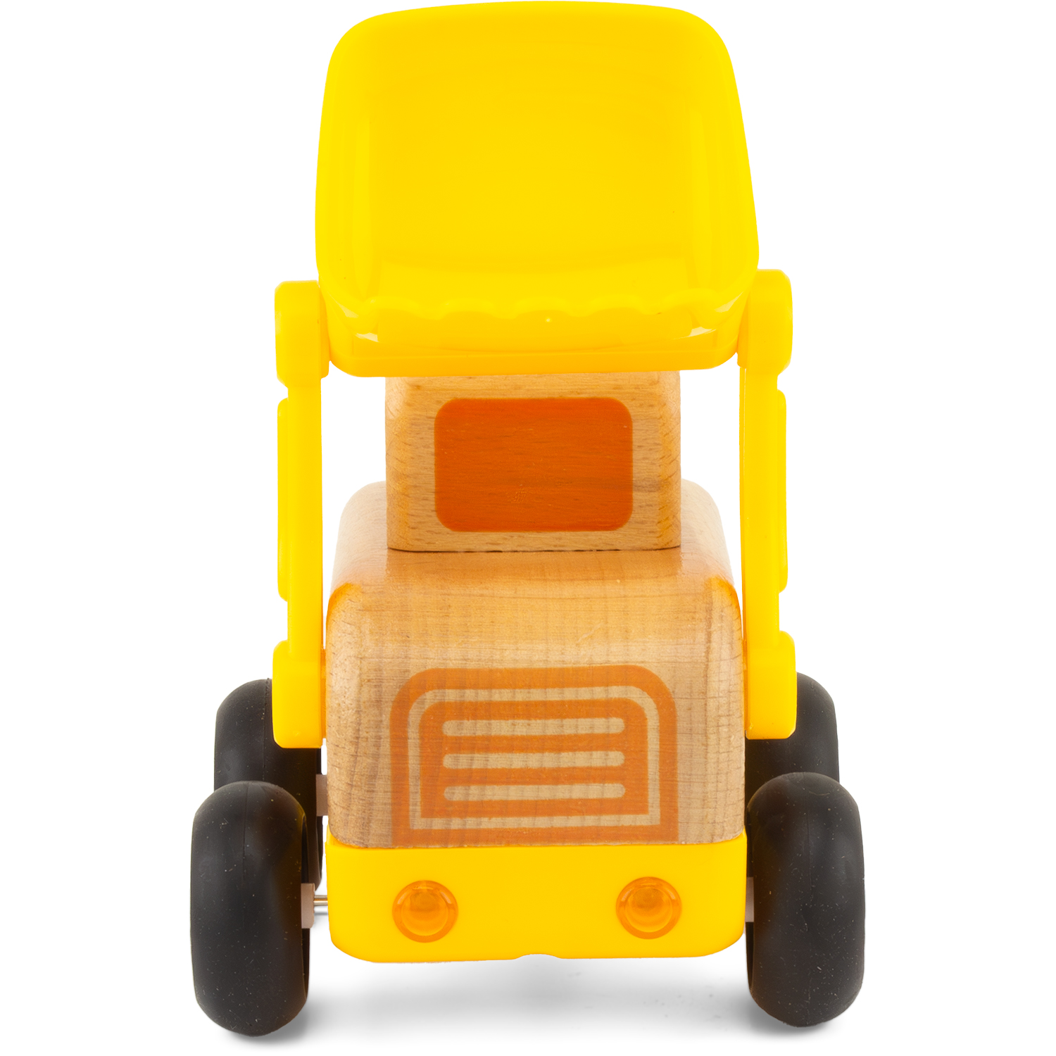 ⦁ Interactivité : La chargeuse est mobile, et en appuyant sur le jouet, les phares s’allument et 3 sons différents de chantier se déclenchent.